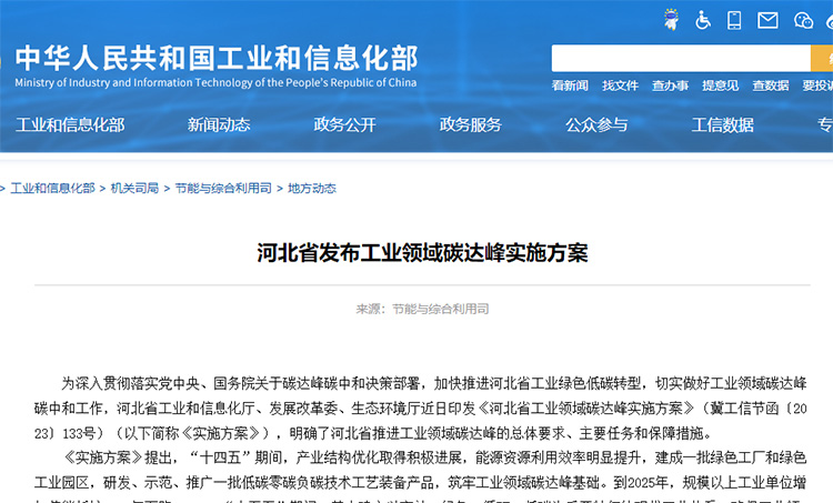河北省發布工業領域碳達峰實施方案 切實推進全省工業綠色低碳轉型