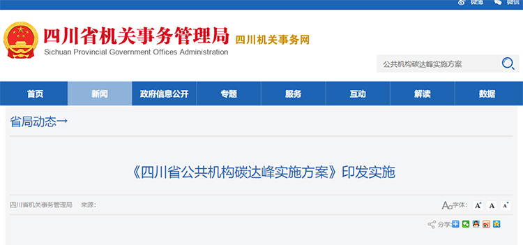 四川出臺公共機構碳達峰實施方案 力爭2030年前公共機構碳排放總量達峰