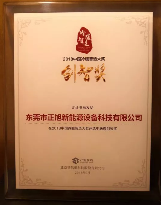 | 加入收藏 秋高氣爽,丹桂飄香。9月13日,以“冷暖智造·新生態(tài)”為主題,由中國(guó)制冷空調(diào)工業(yè)協(xié)會(huì)、中國(guó)節(jié)能協(xié)會(huì)指導(dǎo),產(chǎn)業(yè)在線主辦的第十五屆暨2018中國(guó)暖通空調(diào)產(chǎn)業(yè)發(fā)展峰會(huì)在北京金茂萬(wàn)麗酒店隆重召開(kāi)。來(lái)自政府相關(guān)機(jī)構(gòu)、高等院校以及全國(guó)各地暖通空調(diào)產(chǎn)業(yè)上下游數(shù)百家企業(yè)約400人出席了會(huì)議,40多家媒體見(jiàn)證了這一行業(yè)盛事。正旭董事長(zhǎng)陳帥榮受邀參加本次盛會(huì),并在2018年中國(guó)“冷暖智造”頒獎(jiǎng)盛典上,正旭空氣能榮獲冷暖智造“創(chuàng)智獎(jiǎng)”。