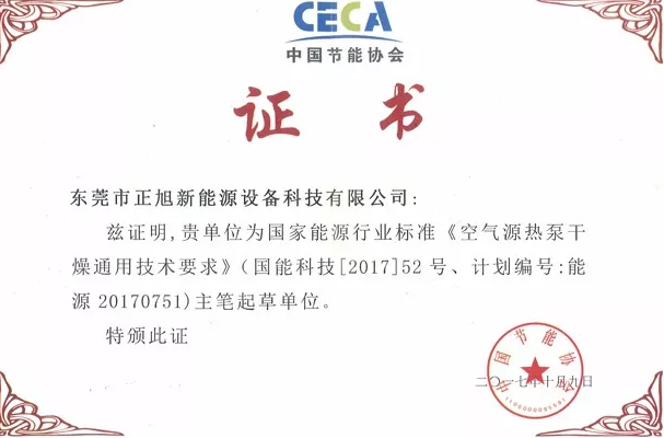 值得一提的是,2017年9月1日,根據“國家能源局2017能源領域行業標準制(修)訂計劃(國能科技【2017】52號)”,由中國節能協會熱泵專委會、中國熱泵產業聯盟組織有關單位和專家在北京召開了“2017七項空氣源熱泵國家能源行業標準啟動會”。期間,正旭獲《空氣源熱泵干燥通用技術要求》主筆起草單位和《空氣源熱泵果蔬干燥機》起草單位。