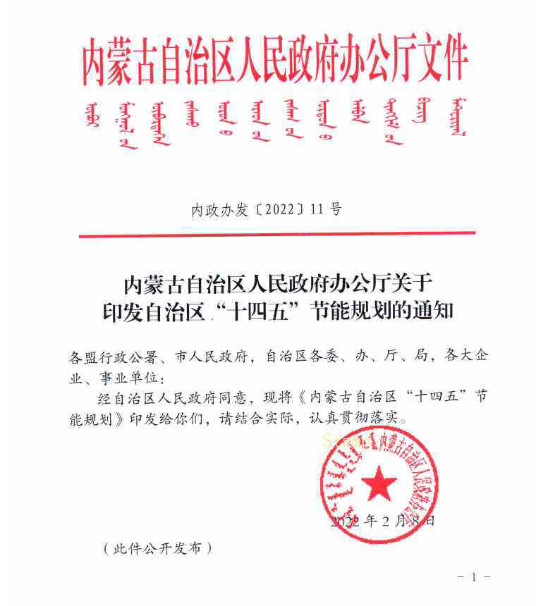 日前,內蒙古自治區人民政府《內蒙古自治區人民政府辦公廳關于印發自治區“十四五”節能規劃的通知》(以下簡稱“規劃”)。規劃重點從以下幾大層面作出詳細闡述: