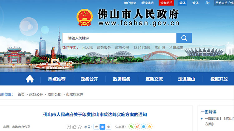 為落實(shí)碳達(dá)峰相關(guān)重大政策部署及工作安排,有序推進(jìn)佛山市碳達(dá)峰工作,佛山市于近日發(fā)布《佛山市碳達(dá)峰實(shí)施方案》(以下簡(jiǎn)稱“方案”),以經(jīng)濟(jì)社會(huì)發(fā)展全面綠色轉(zhuǎn)型為核心,在高效利用資源、嚴(yán)格保護(hù)生態(tài)環(huán)境、應(yīng)對(duì)氣候變化的基礎(chǔ)上,將碳達(dá)峰納入經(jīng)濟(jì)高質(zhì)量發(fā)展和生態(tài)文明建設(shè)整體布局,系統(tǒng)推進(jìn)佛山市各領(lǐng)域碳達(dá)峰工作。